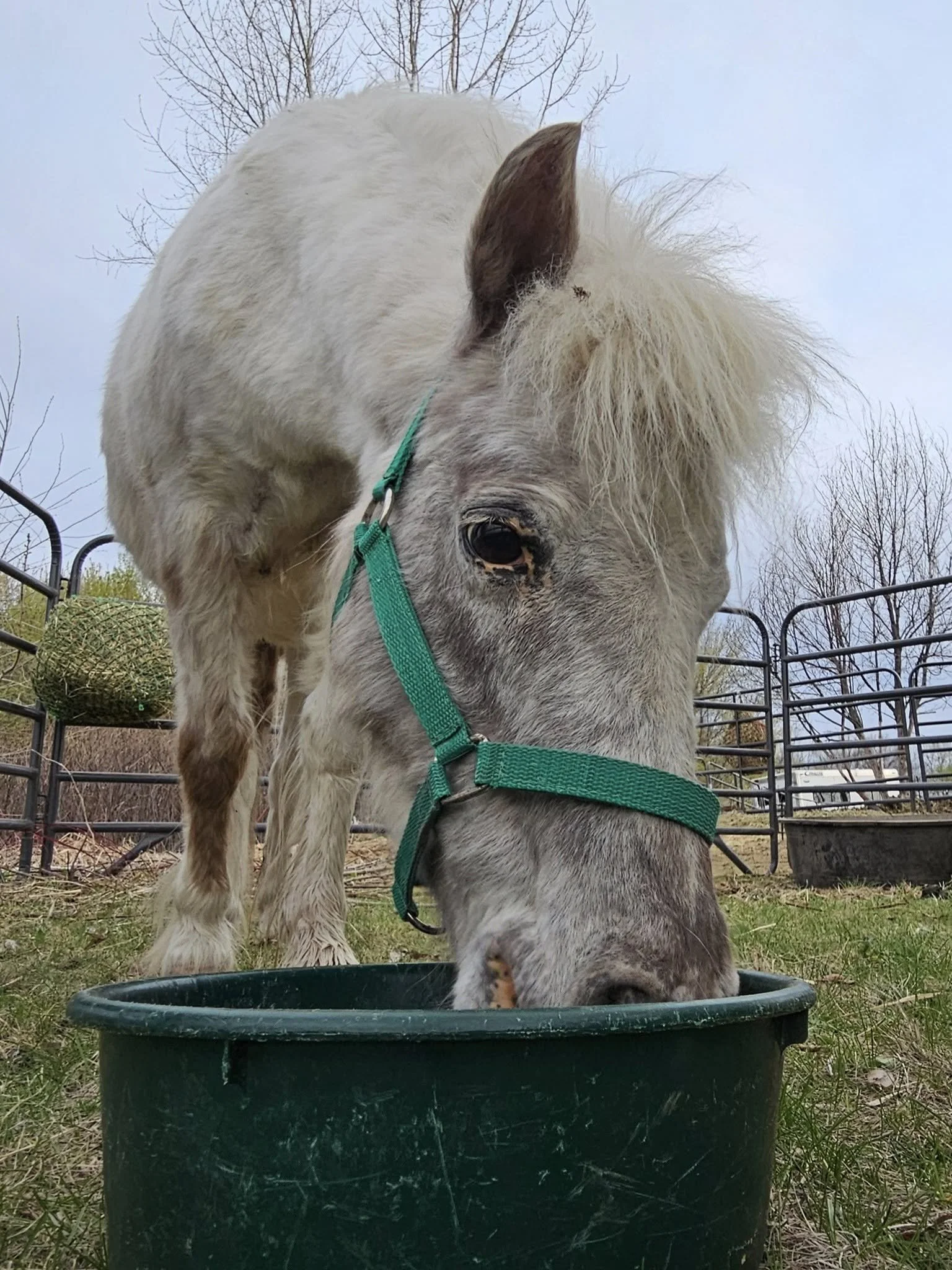 Rosanna came to us from a Carleton County humane case in February, 2026. She was reactive, fearful, feral, lacking farrier and vet care, covered in equine lice, carrying an insanely high worm load (fecal egg could of 550), and last - but not least - living with an intact stud colt (Gentleman Jack) and two other mares (Joan Jett and Spicy Mustard).