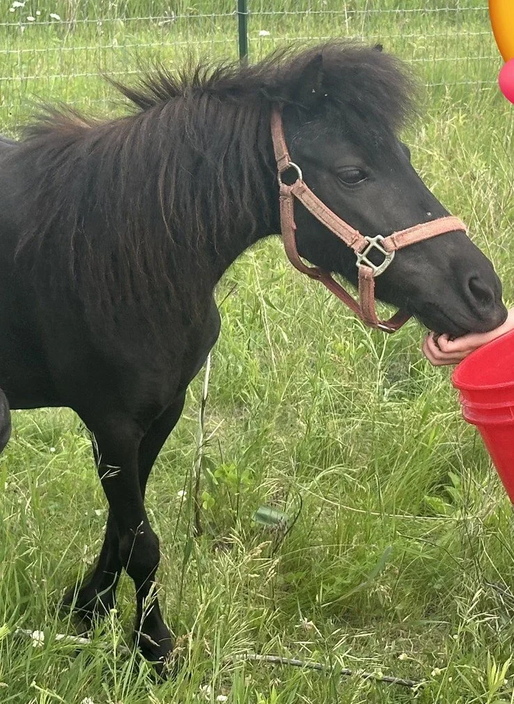 Gentleman Jack came to us from a Carleton County humane case in February 2026. He was a stud colt (aka intact), feral, lacking farrier and vet care, covered in equine lice, carrying an insanely high worm load (fecal egg count of 1675), skinny, and last - but not least - of breeding age and living with his momma (Joan Jett) and two other mares (Rosanna Cash and Spicy Mustard).